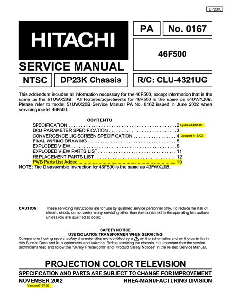 Currently you are looking with regard to an Service Manual Hitachi 50dx20b Projection Color Television example of which we provide here inside some form of document formats many of these as PDF, Doc, Power Point, and also images of which will make it simpler for you to create an Service Manual Hitachi 50dx20b Projection Color Television yourself. For a clearer look, you are able to open a few examples below. All of the good examples about Service Manual Hitachi 50dx20b Projection Color Television on this website, we get from many sources so you could create a better file of your own.